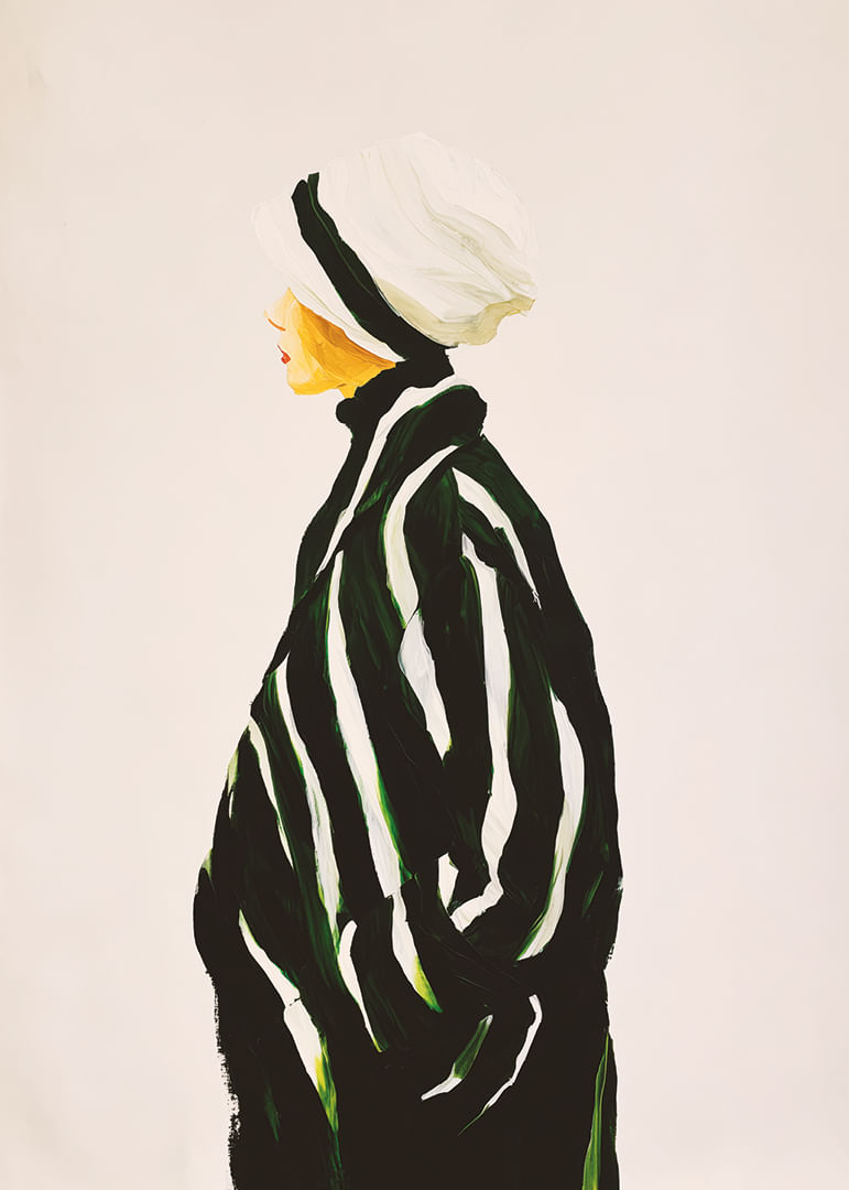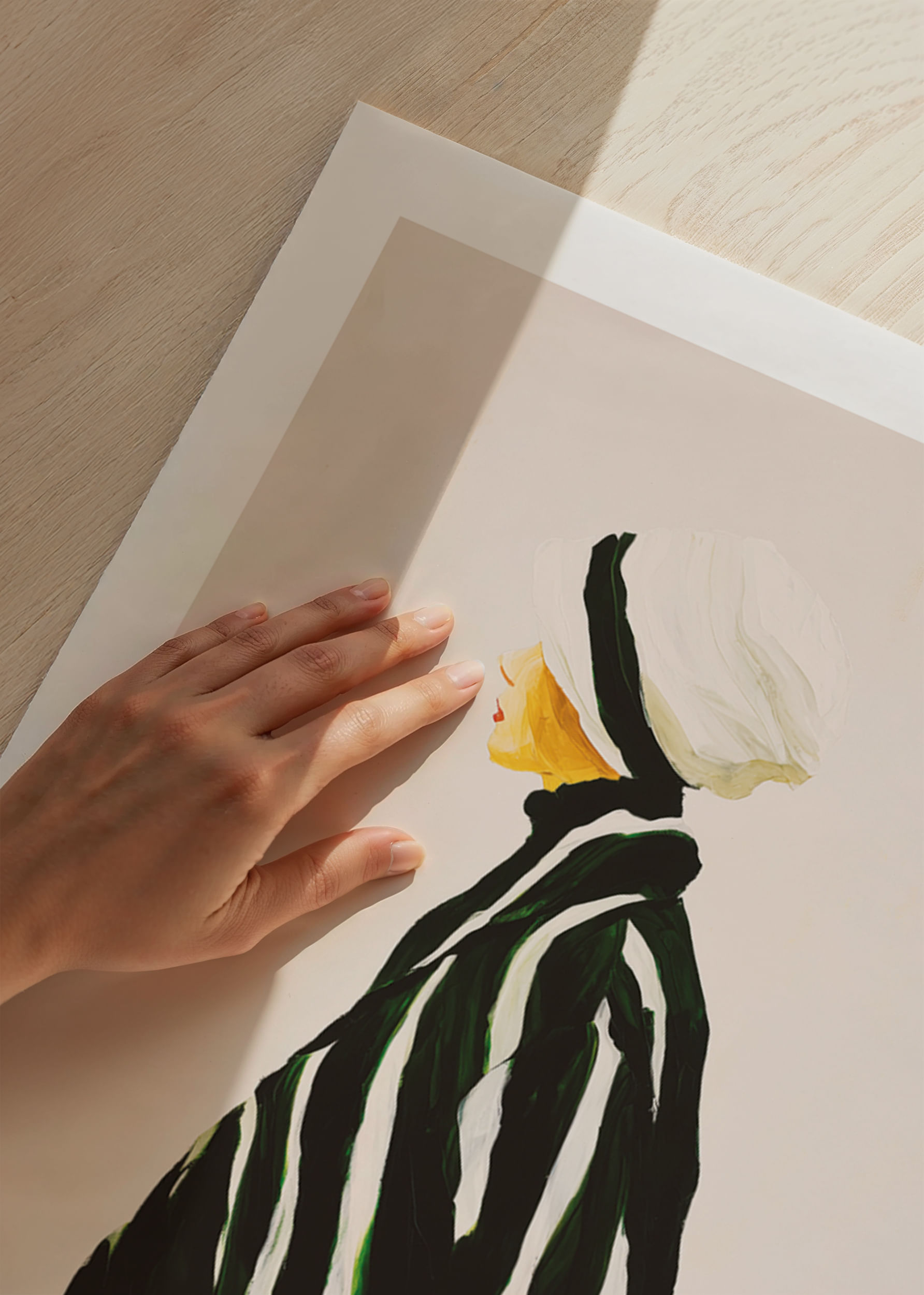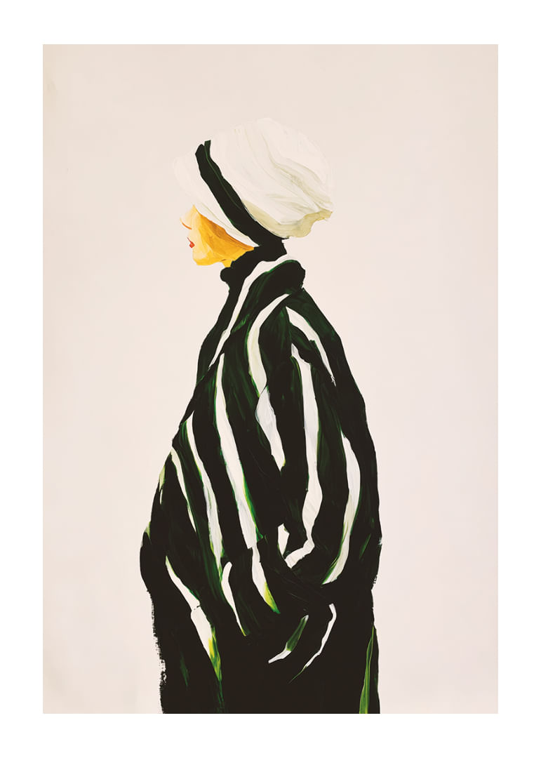 Denne plakat vil fange din opmærksomhed med sine rene kontraster og elegante design. De markante sort-hvide striber mod en neutral baggrund skaber en tidløs følelse, mens den diskrete silhuet antyder elegance og sofistikering. Når du hænger denne plakat i din stue, vil det forvandle rummet til et moderne og inspirerende sted, hvor enkelhed møder stil. Oplev kunstens kraft i dit hjem.