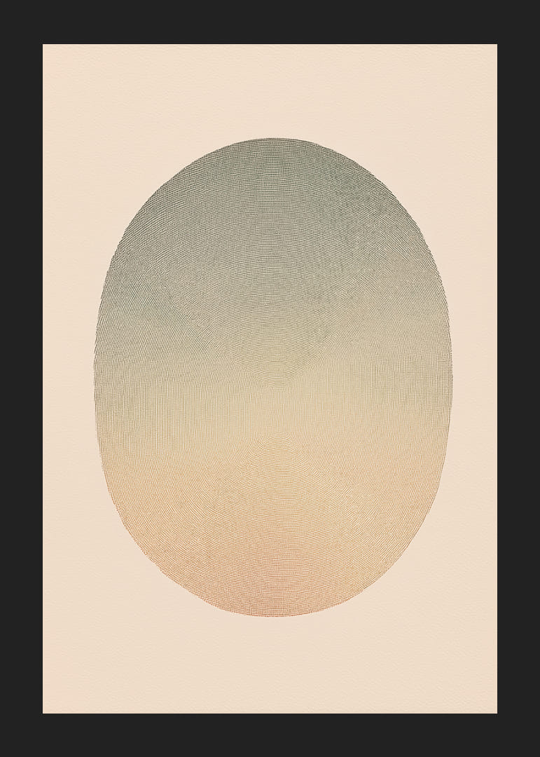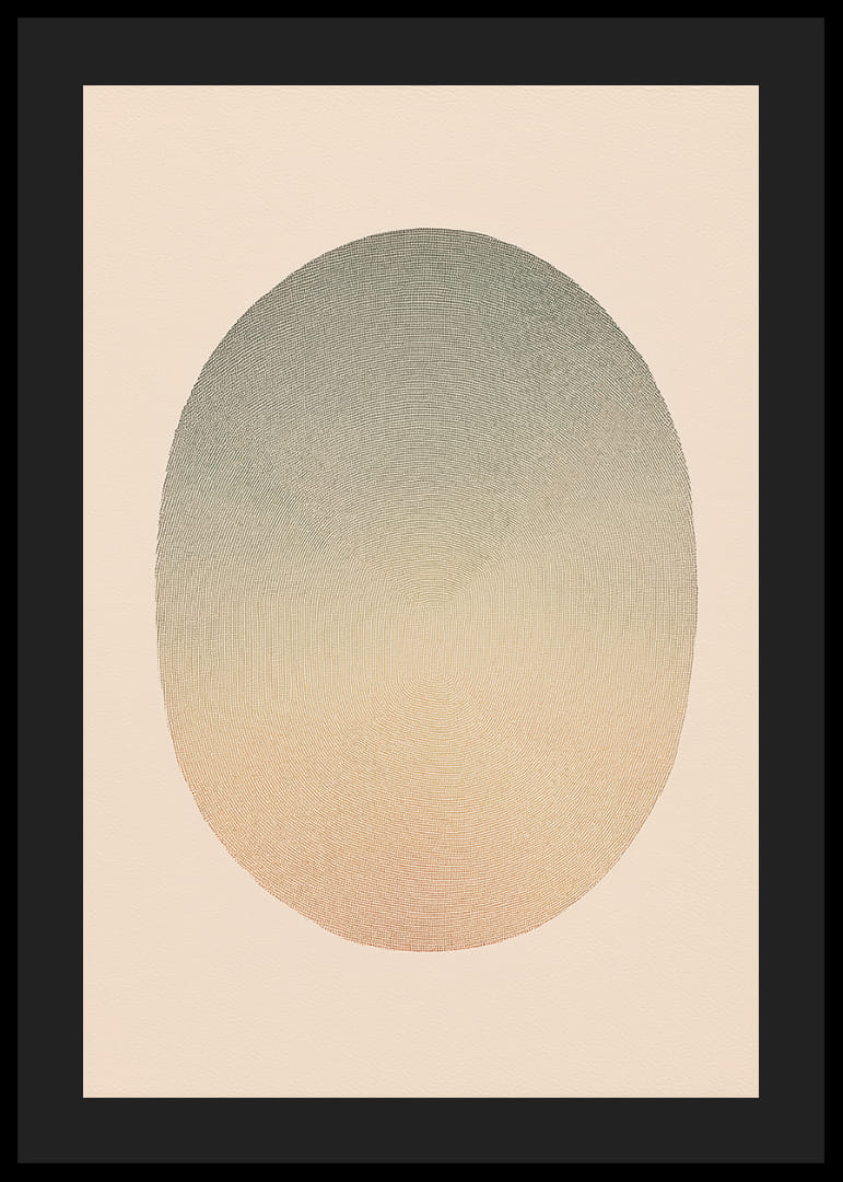 Denne plakat fanger øjet med en blød kugle af overgangsfarver, der spænder fra subtile jordfarver til beroligende nuancer. Den tidløse komposition fremkalder en følelse af ro og meditativ stilhed. Med sin rene æstetik bidrager plakaten med en kølig atmosfære og elegance, hvilket gør den til et perfekt supplement til en moderne stue eller et afsides hjørne til hvile.