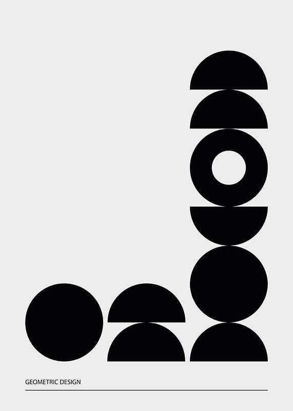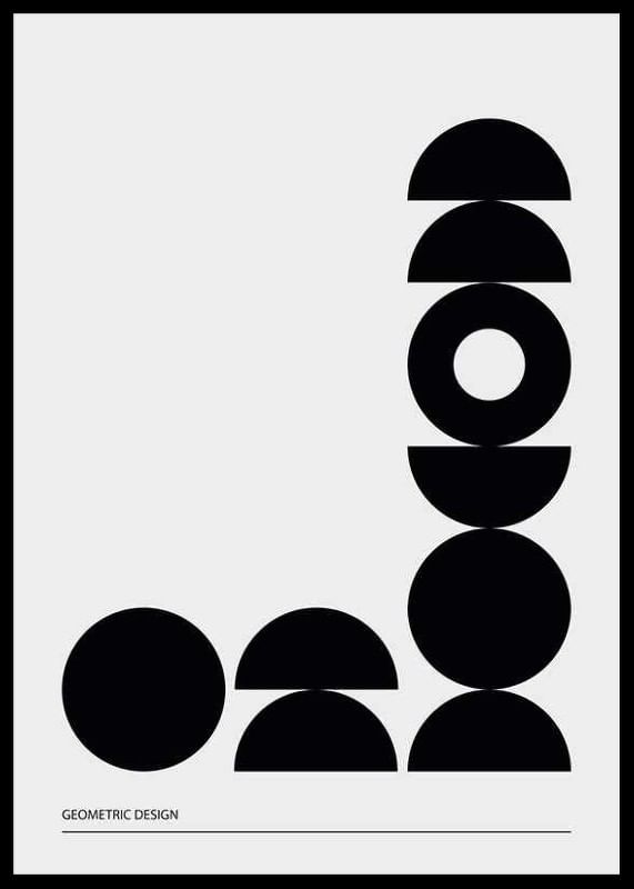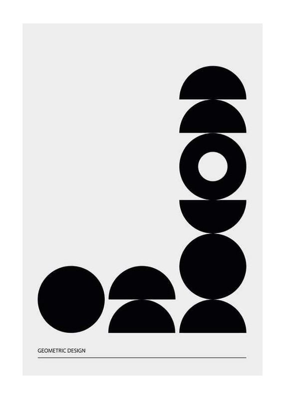 Sort-hvid plakat fra kategorien grafik. Denne plakat har geometriske objekter i sort mod en lysegrå baggrund.