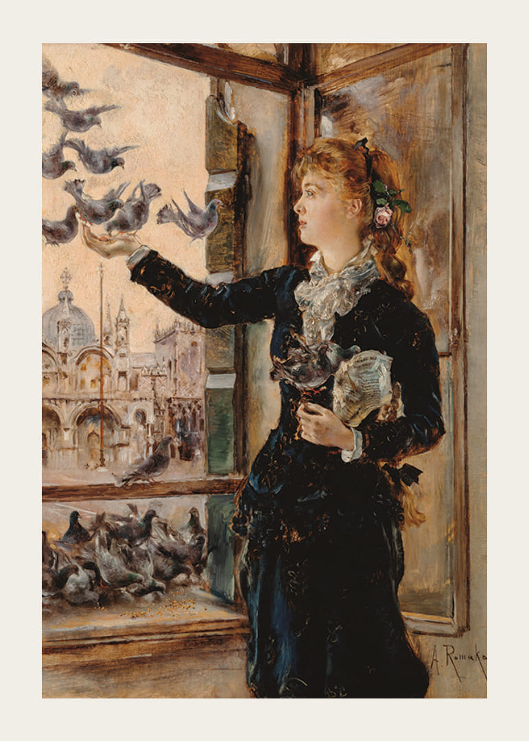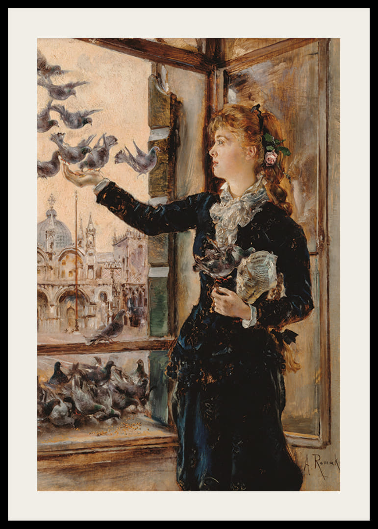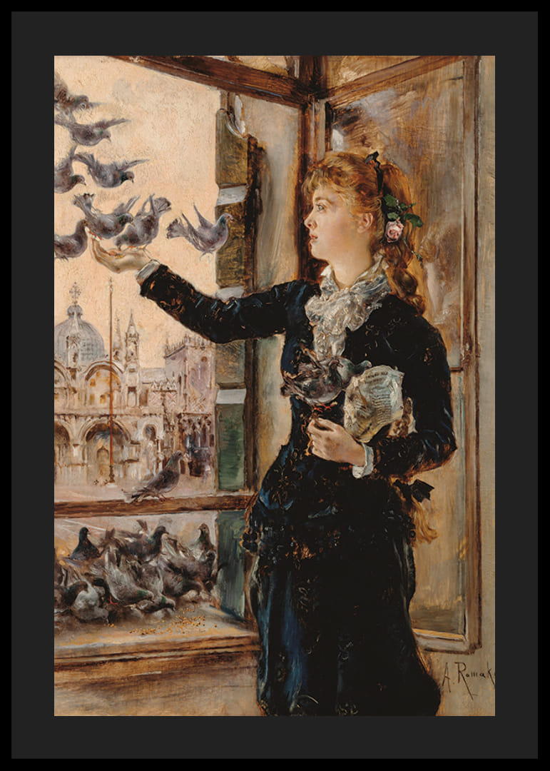 Mädchen An Einem Fenster Zum Markusplatz Tauben Fütternd By Anton Romako